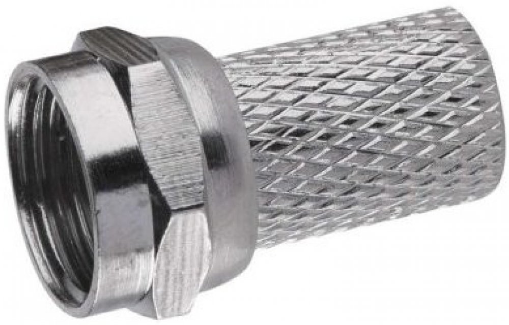 F-konektor vidlice určený k napojení na koaxiální kabel CB 50,100. F-konektor má šroubovací vidlici.