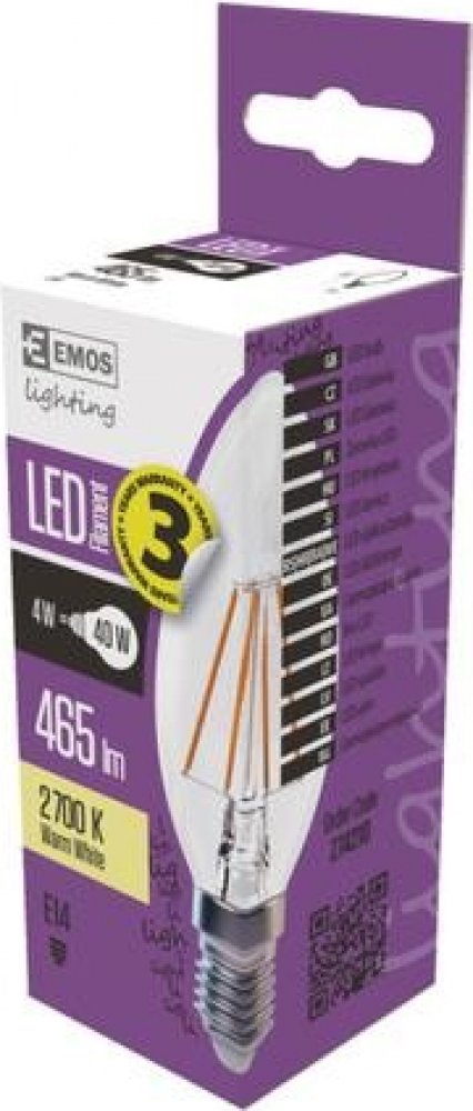 Emos LED žárovka CANDLE 4W/37W E14 WW Teplá bílá 420 lm Filament A+