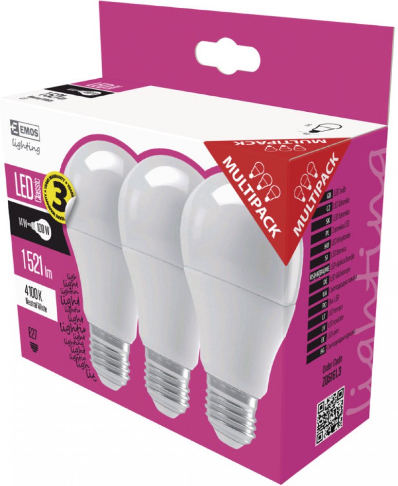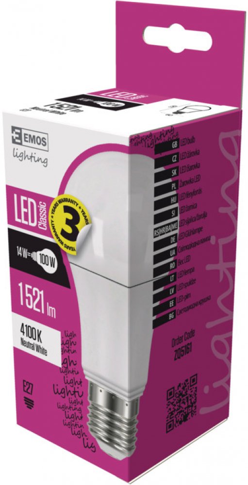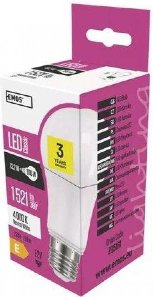 neutrální barva 4000 K E Emos 30000 h 1521 lm E27 14 W 230 V 80