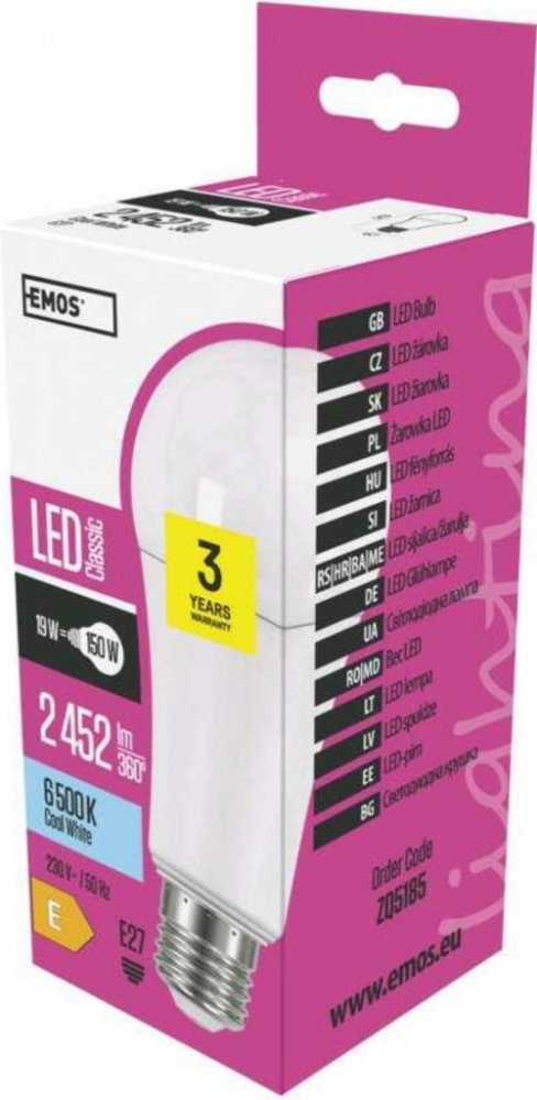 studená barva 6500 K E baňka Emos LED žárovky 30000 h 2452 lm E27 19 W 230 V 80