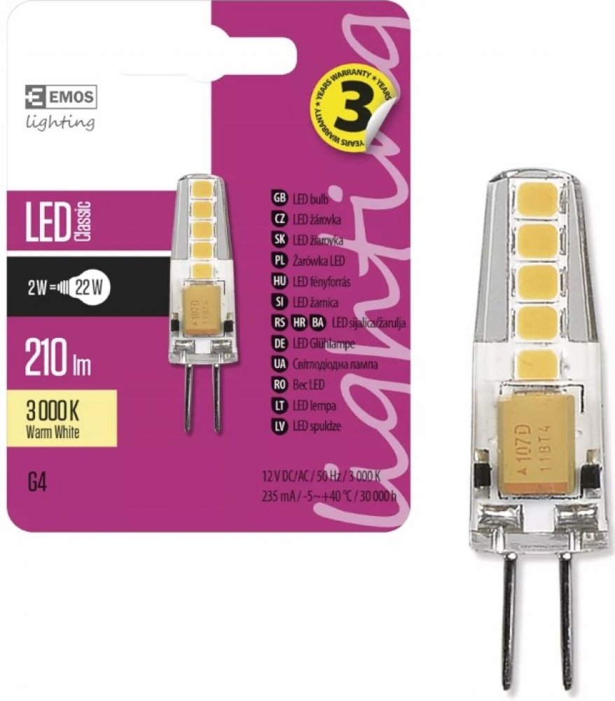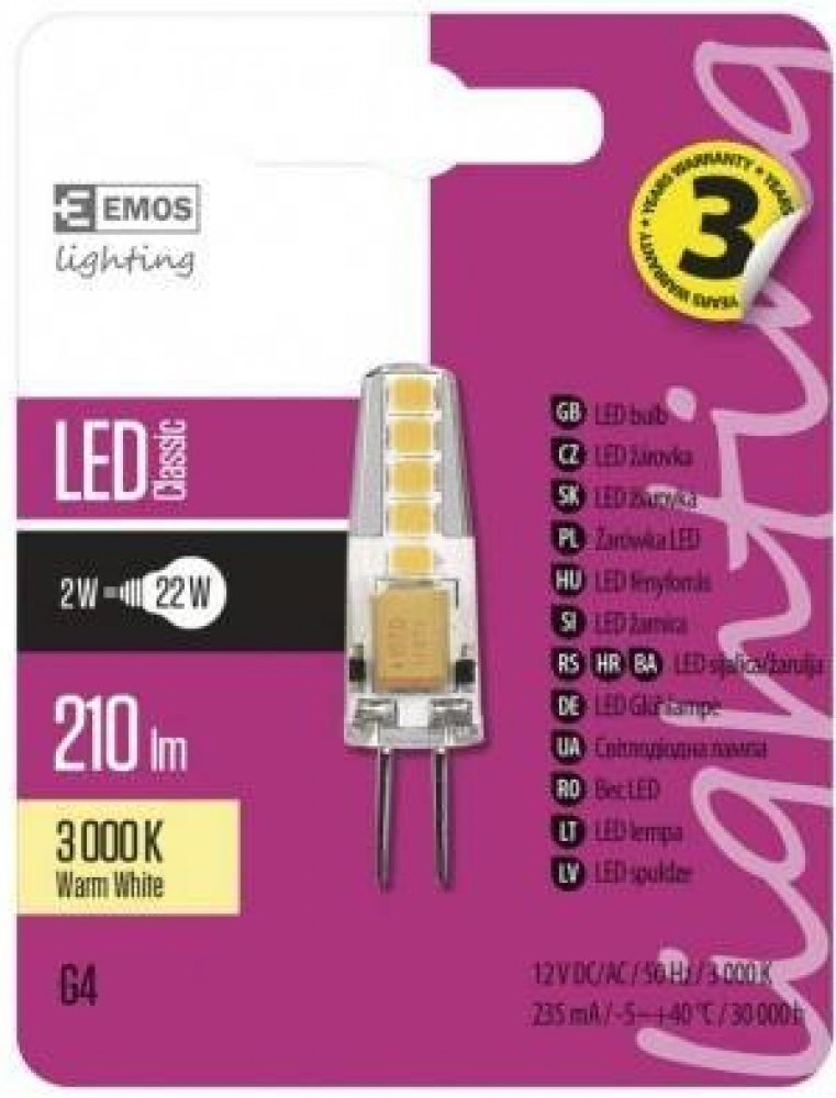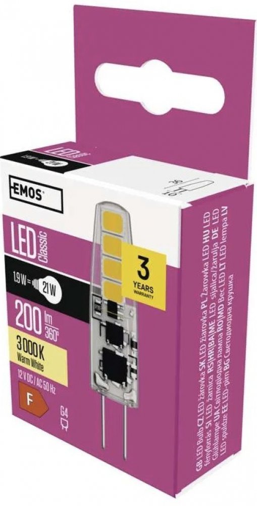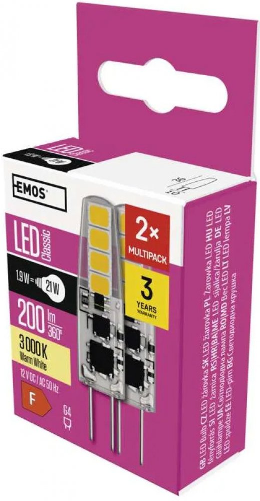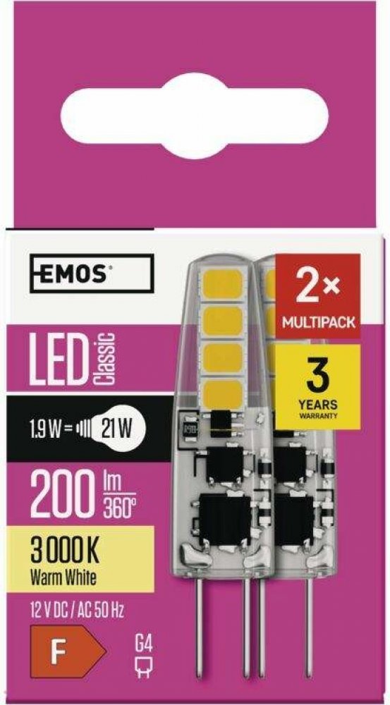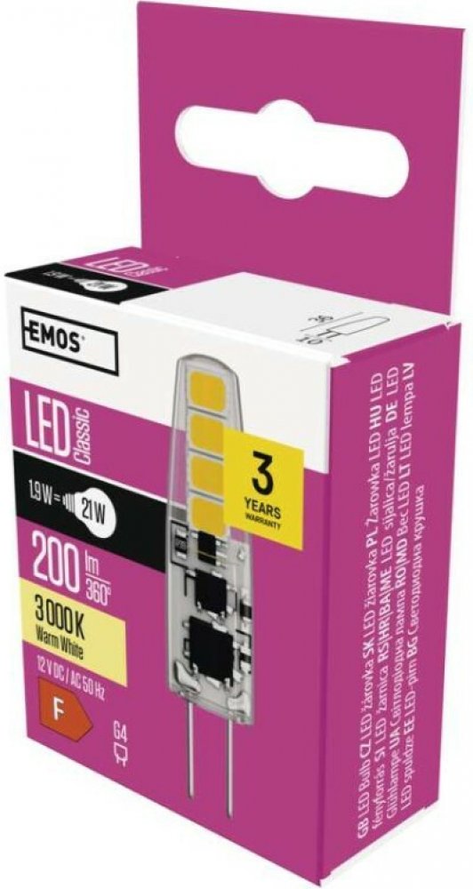 teplá bílá 3000 K F kapsle Emos LED žárovky 30000 h 200 lm G4 1.9 W 12 V 80