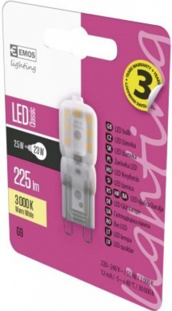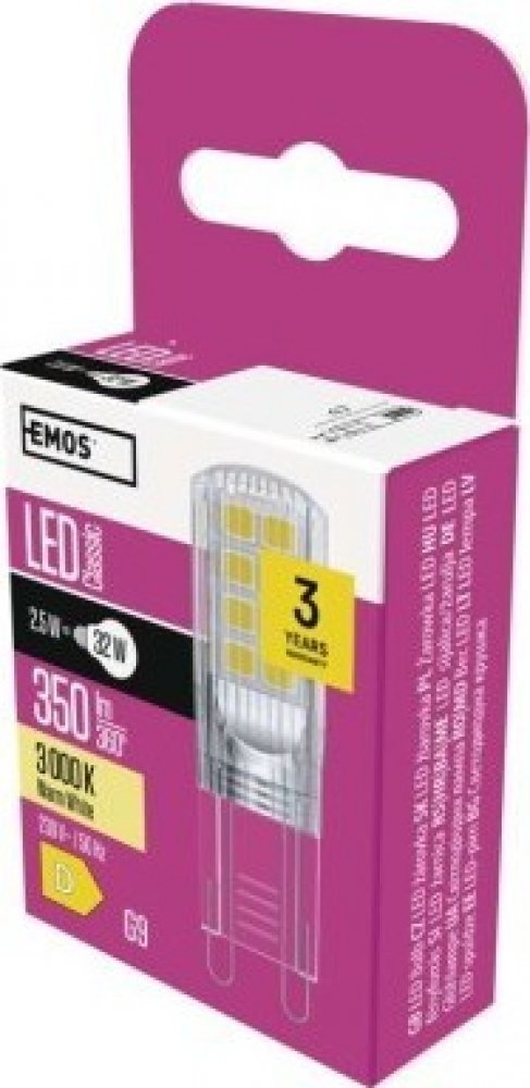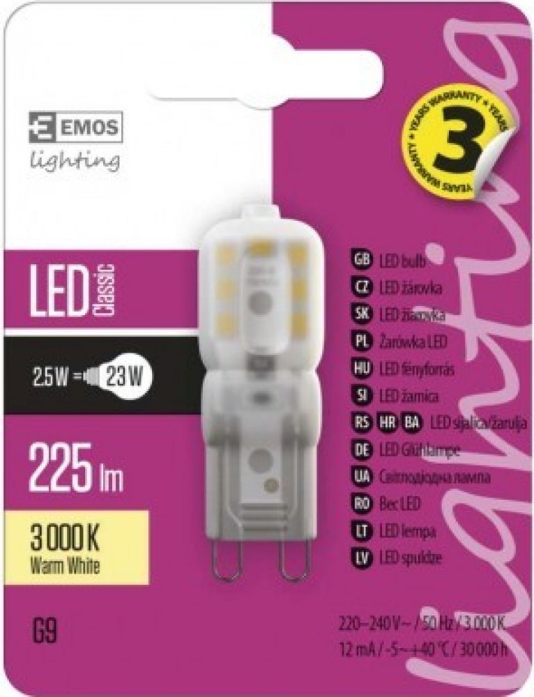 teplá bílá 3000 K D Emos 30000 h 350 lm G9 2.5 W 230 V 80