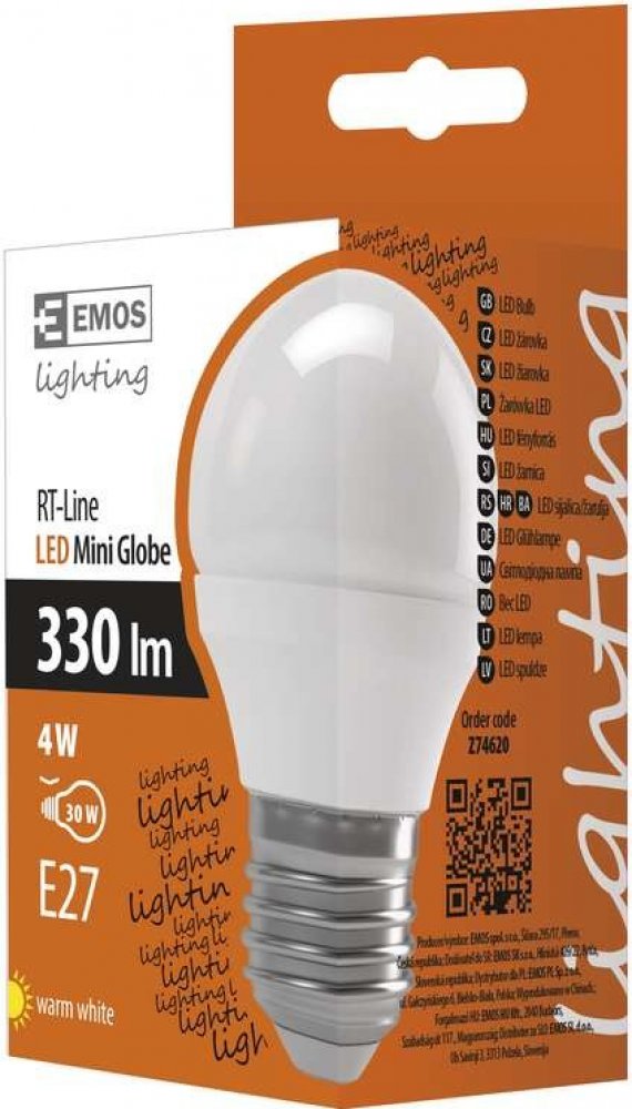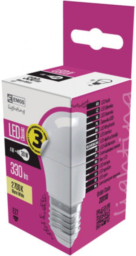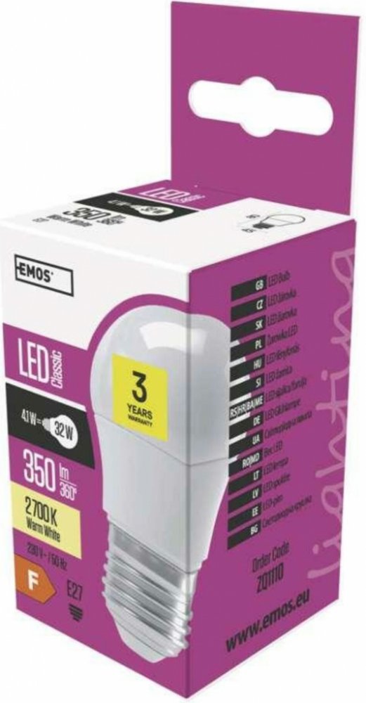 teplá bílá 2700 K F globe Emos LED žárovky 30000 h 330 lm E27 4 W 230 V 80