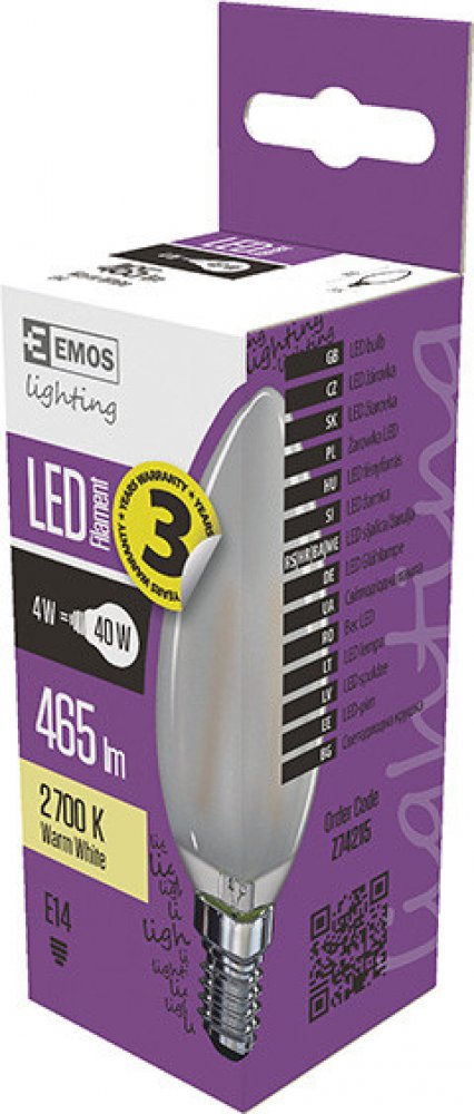 Emos LED žárovka Filament Candle matná A++ 4W E14 teplá bílá
