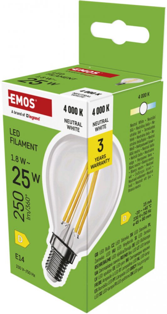 LED žárovka EMOS je energeticky nenáročná a má dlouhou životnost až 25000 h. V porovnání s tradičními žárovkami generuje velmi málo tepelné energie, a navíc ihned po zapnutí svítí bez viditelného blikání. Barevná teplota světla, kterou žárovka s paticí E14 vyzařuje, je neutrální bílá. Neutrální bílá napodobuje charakter denního světla. Nabízí univerzální a vyvážený typ osvětlení. V balení je jedna...