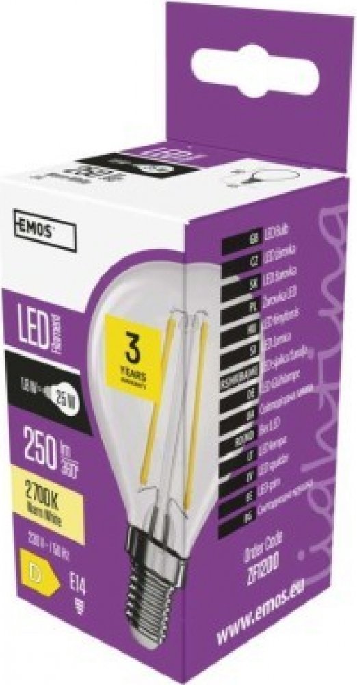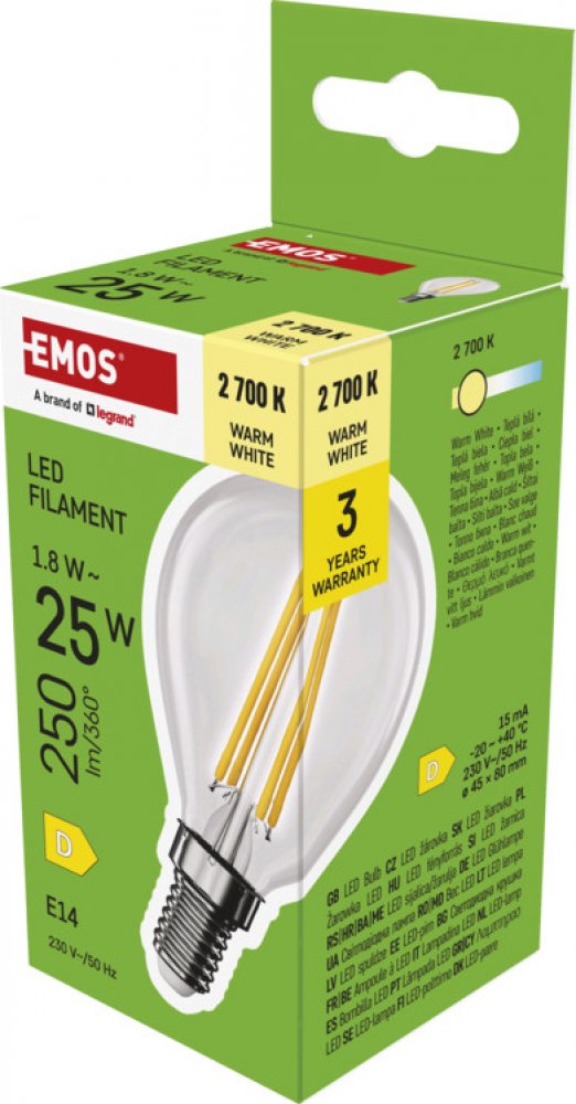 teplá bílá 2700 K D globe Emos LED žárovky 25000 h 250 lm E14 1.8 W 230 V 80