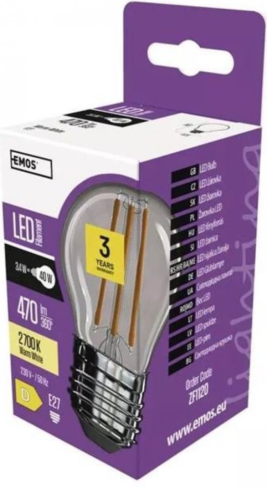 teplá bílá 2700 K D globe Emos LED žárovky 25000 h 470 lm E27 3.4 W 230 V 80