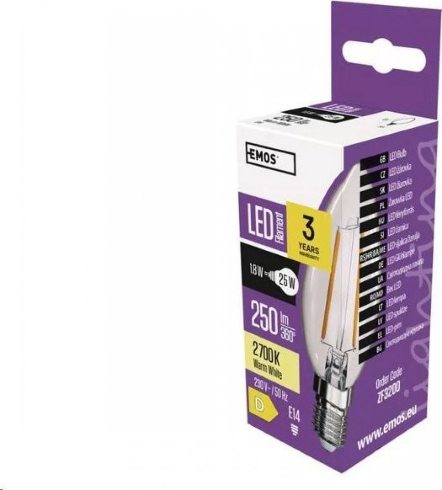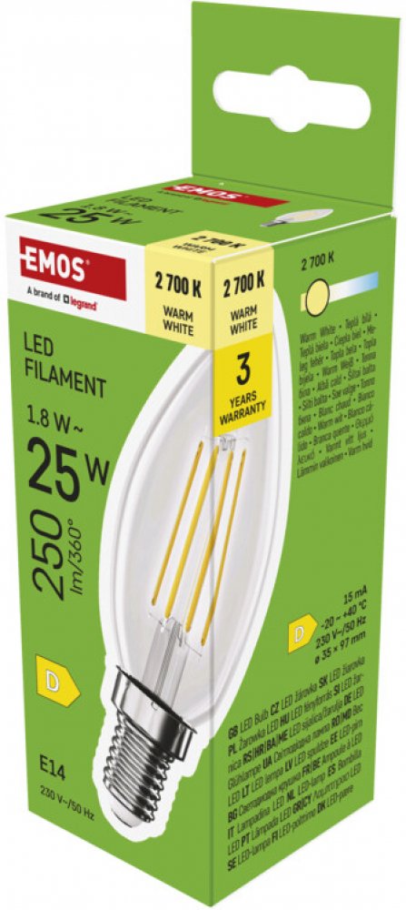 teplá bílá 2700 K D svíčka Emos LED žárovky 25000 h 250 lm E14 1.8 W 230 V 80