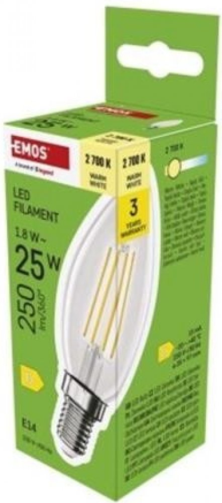 Emos LED žárovka Filament svíčka E14 1,8 W 25 W 250 lm teplá bílá