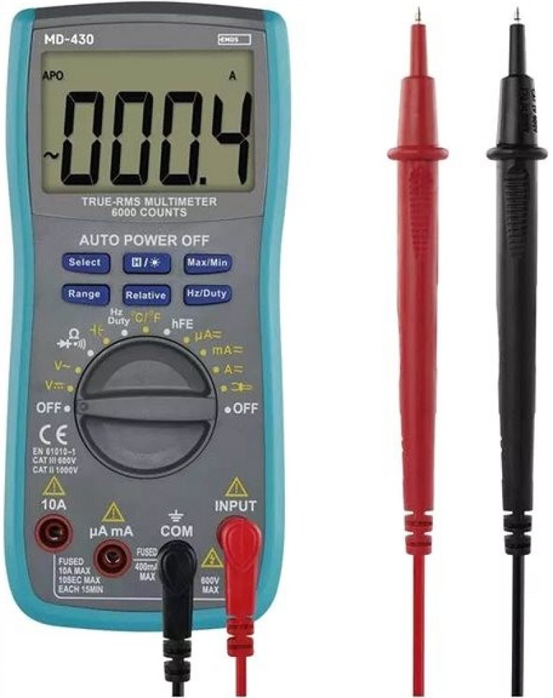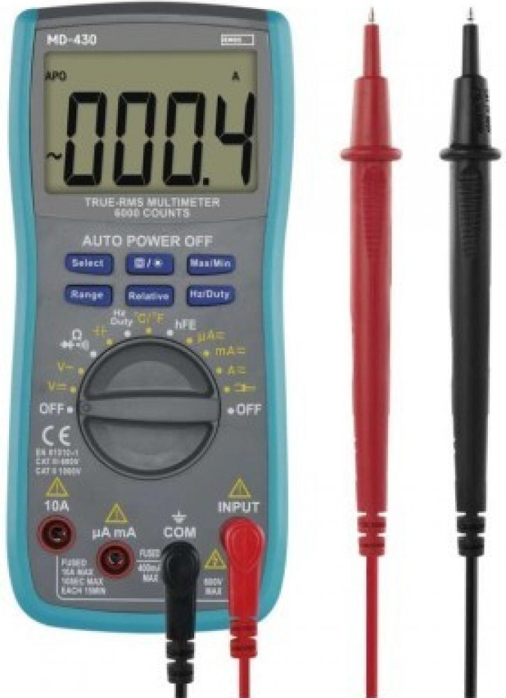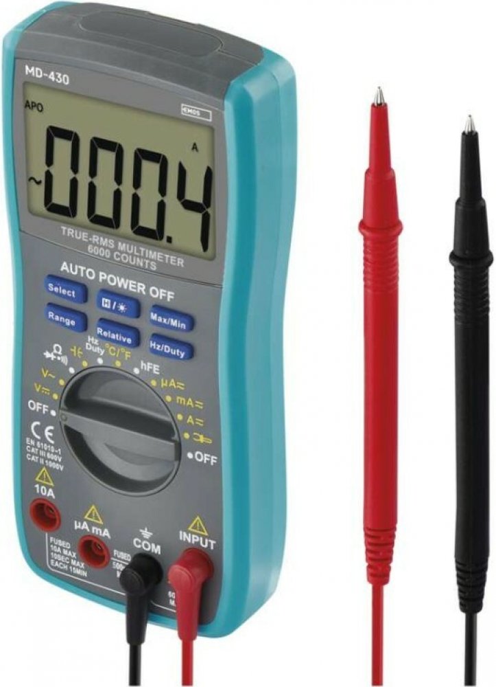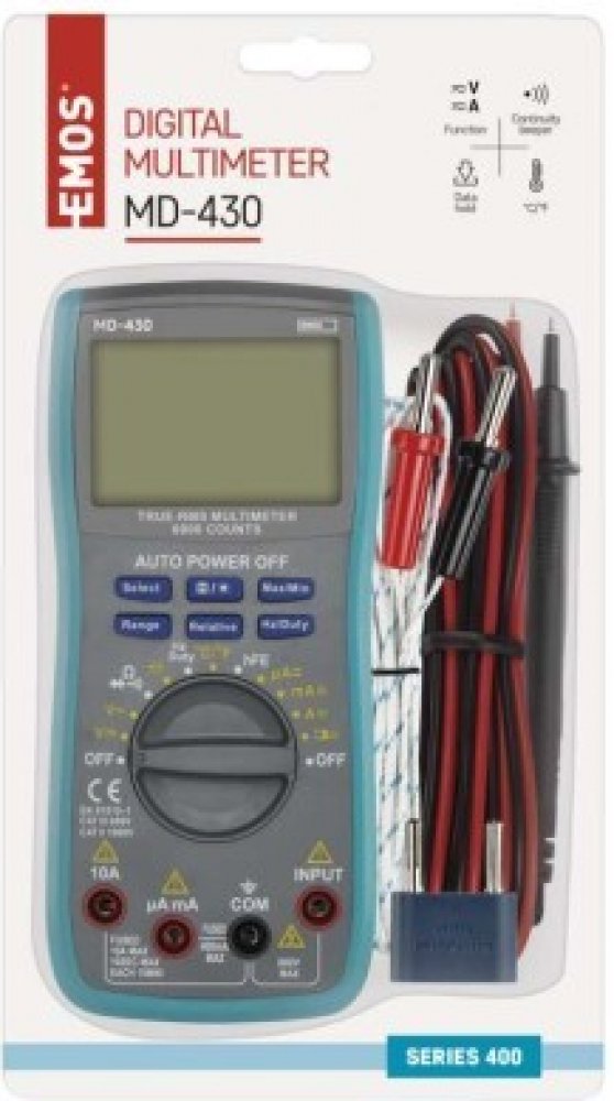 Práce ve zhoršených světelných podmínkách nejsou pro uživatele multimetru MD-430 díky jeho podsvícenému displeji žádnou překážkou. Velký rozsah měřeného AC/DC proudu i napětí dělají z tohoto multimetru skutečně univerzálního pomocníka. Díky funkci True RMS dokáže přístroj přesně změřit efektivní hodnoty libovolných střídavých nesinusových signálů proudu a napětí. Navíc je při nastavování rozsahu měření možné využít manuální a automatickou volbu rozsahu.