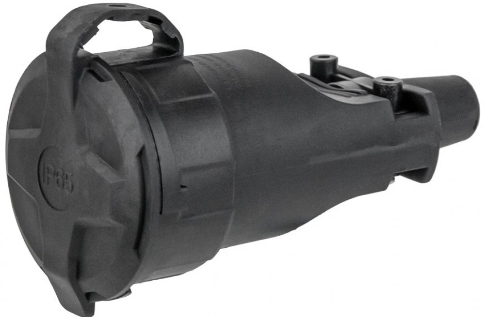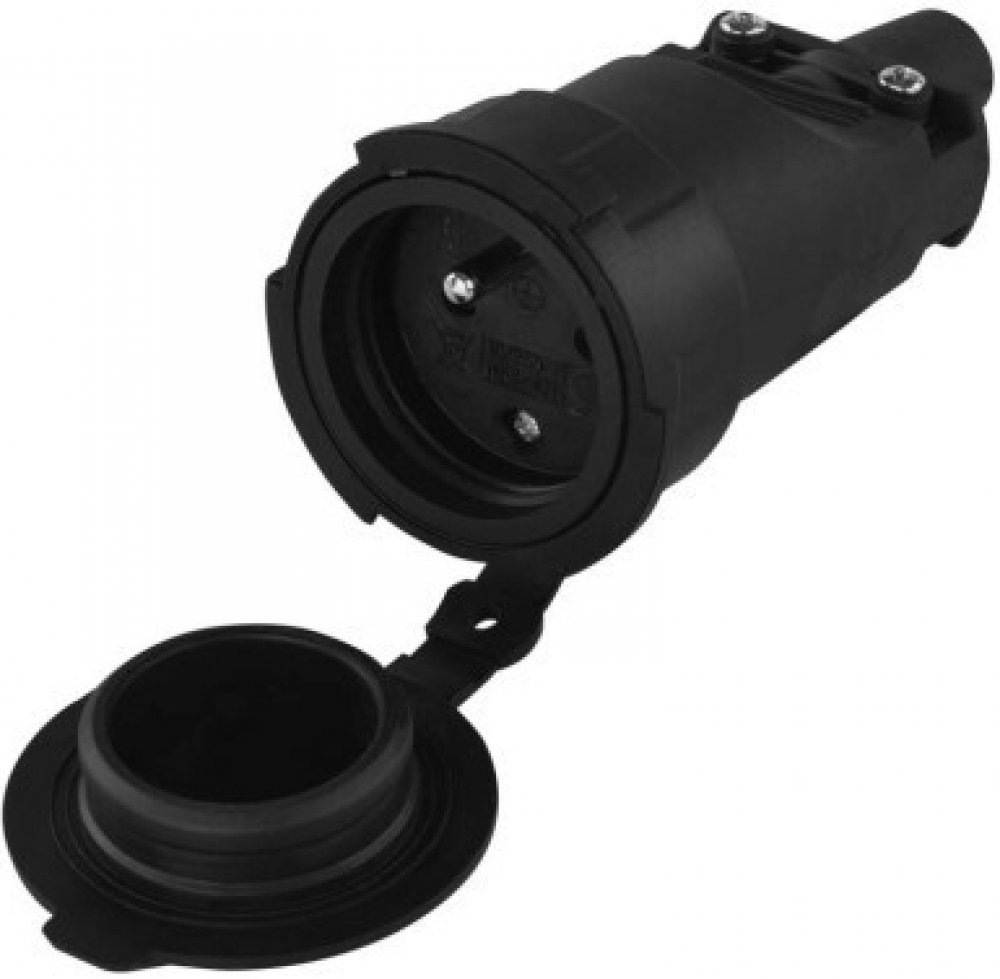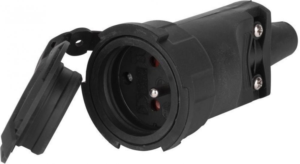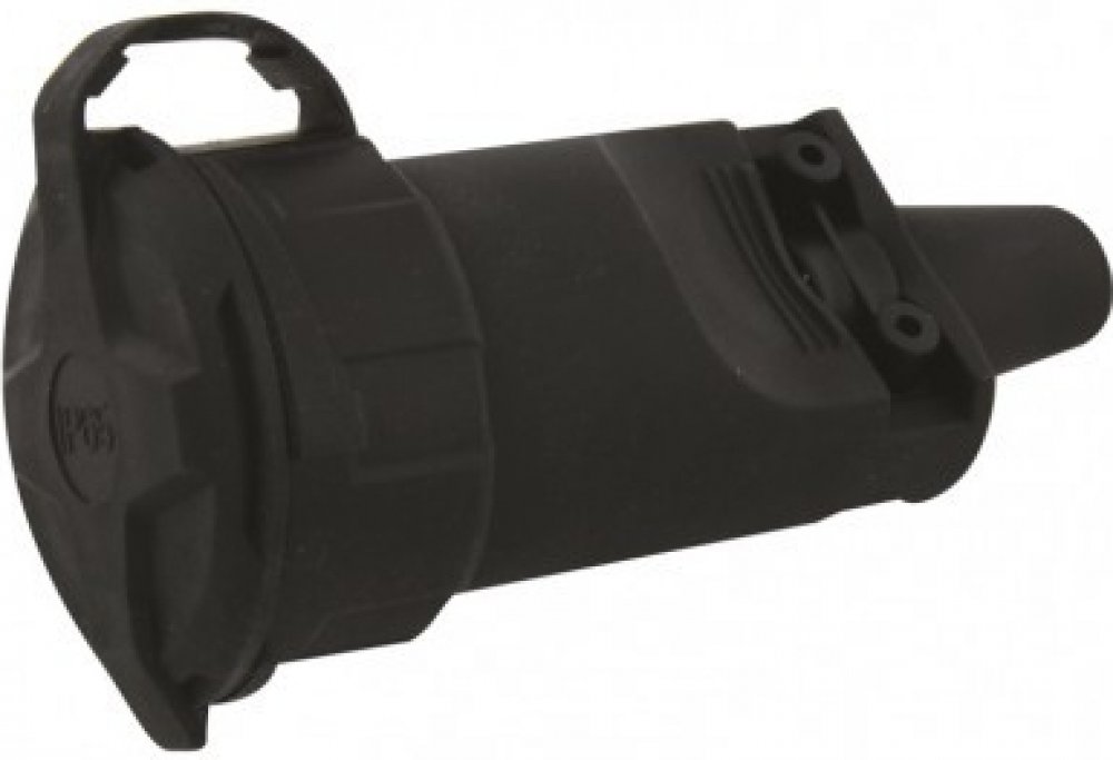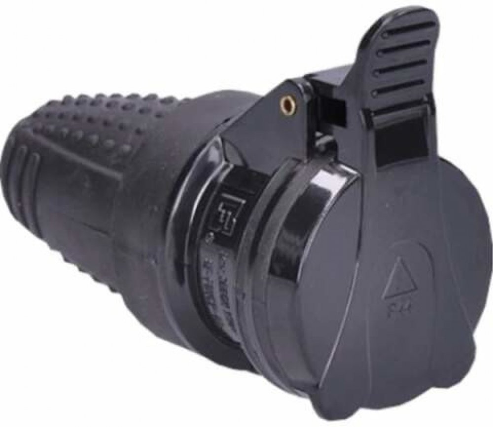 Gumová zásuvka pro pohyblivý prodlužovací přívod. Je určena k připojení elektrických zařízení kde je vyžadován vyšší stupeň krytí (i v exteriéru).