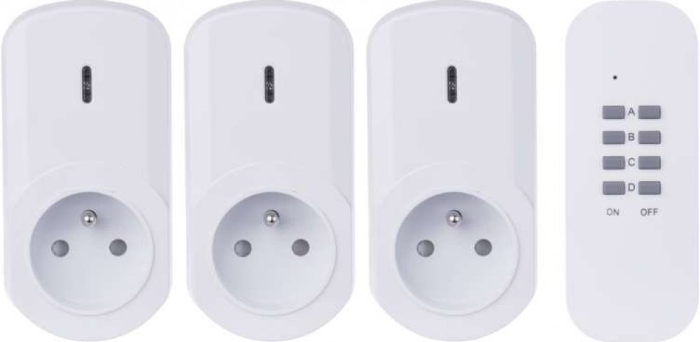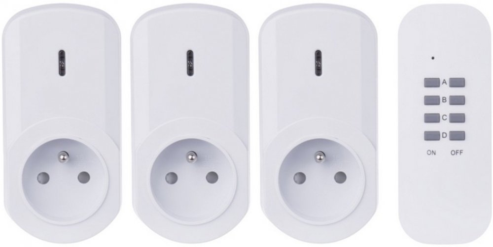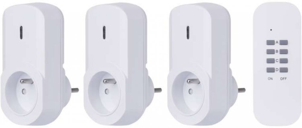 Produkt: Dálkově ovládané zásuvky, 3 zásuvky + 1× dálkový ovladač