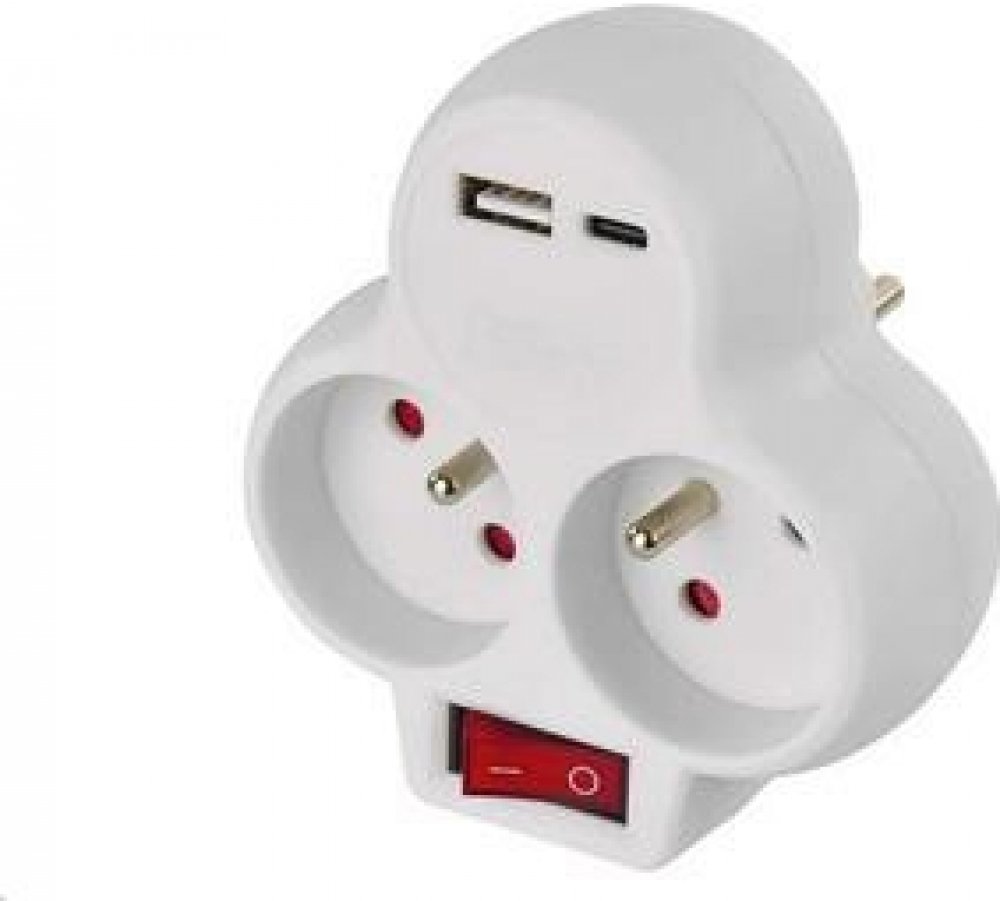 - Produkt – rozbočovací zásuvka 2× + 1× USB-A + 1× USB-C