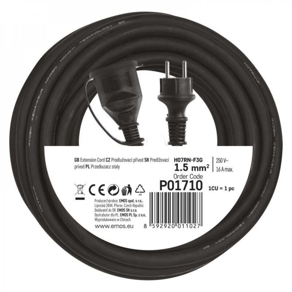EMOS 1 10 m černá IP44 16 A 1.5 mm²