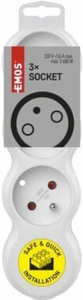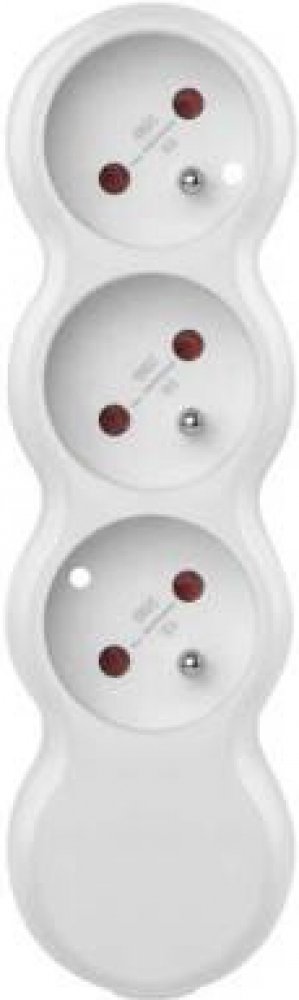 3 zásuvka bez vypínače pro pohyblivé přívody určená pro výrobu prodlužovacích přívodů nebo jako náhradní díl. Vhodná pro maximální zátěž 16 A max. Kvalitní samostatná zásuvka určená pro montáž prodlužovacího přívodu a k připojení elektrických spotřebičů dle daného počtu zásuvek. Zásuvka je bílé barvy bez vypínače.