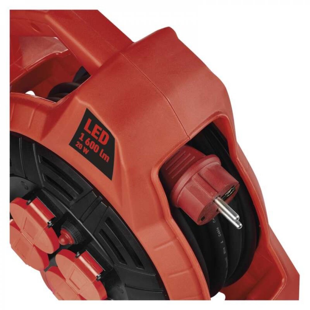 EMOS P08420 je robustní prodlužovací kabel na navíjecím bubnu, který je navržen pro profesionální využití ve stavbách, dílnách, skladech, servisech i domácích garážích. Kromě 4 zásuvek 230 V navíc nabízí integrovaný LED reflektor o výkonu 20 W, takže si můžete posvítit přesně tam, kde to potřebujete – bez nutnosti dalšího světla. Ideální řešení pro ty, kdo chtějí šetřit místo i čas.