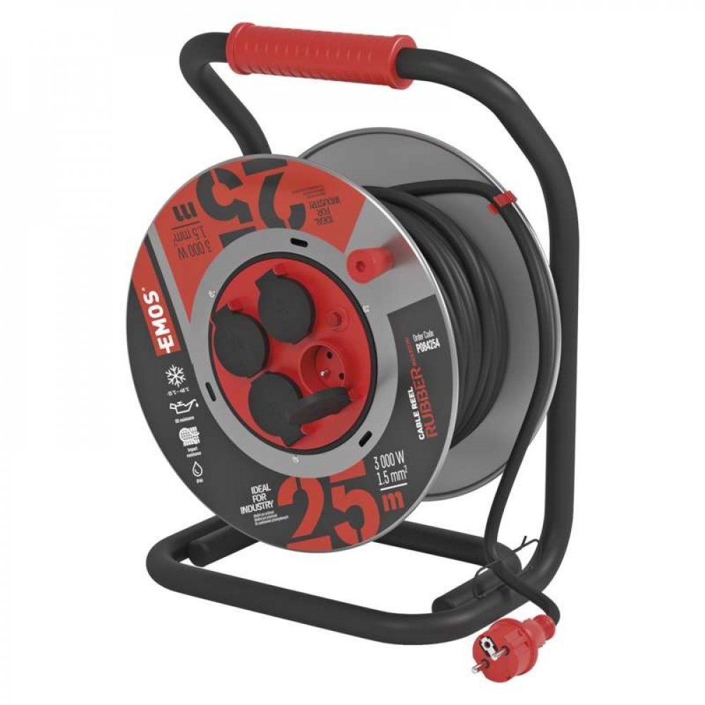 EMOS 4 25 m černé na zahradu a ven pro domácí spotřebiče bez USB portů IP44 16.0 A 1.5 mm² kabelový buben 3680.0 W