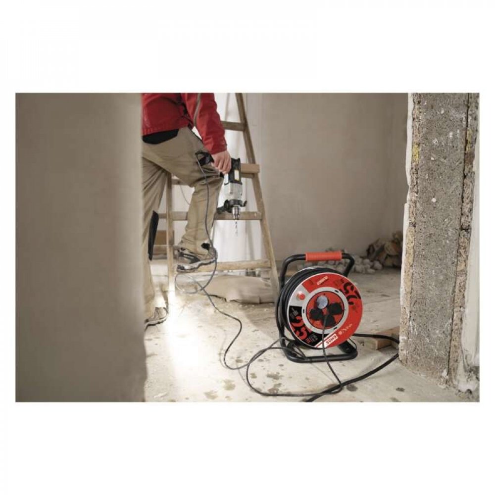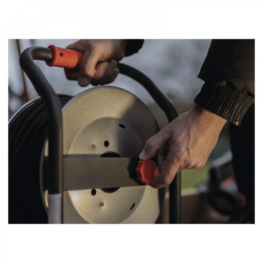 - Komfortní navíjení: Vodicí oko pro precizní ukládání vodiče a brzda pro aretaci cívky v požadované poloze.