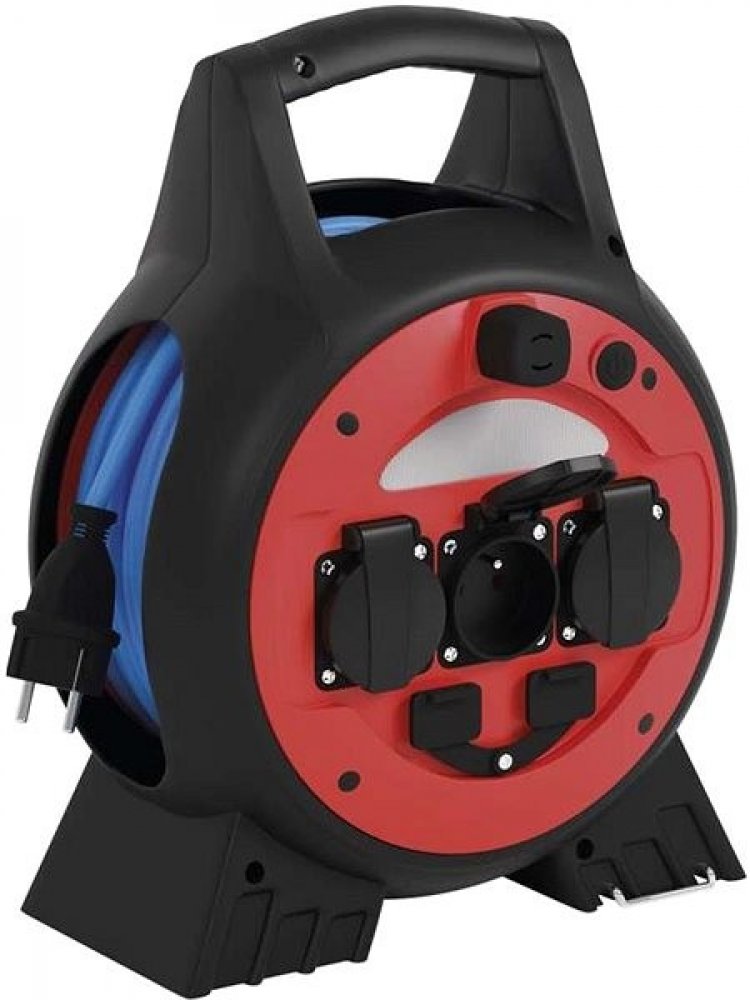 Podrobnosti o produktu 1908732000 Počasí odolný prodlužovací kabel na bubnu a ndash; 20 m, 3 zásuvky, modrý