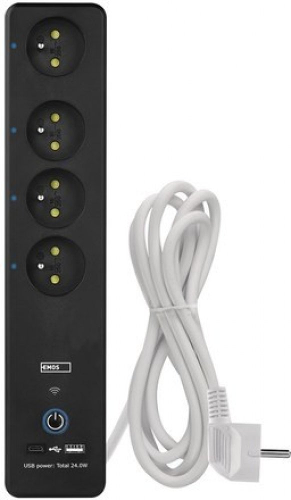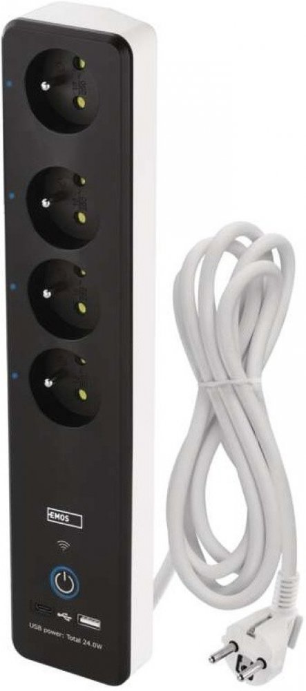 EMOS 4 2 m vícebarevné do interiéru pro domácí spotřebiče s USB-A i USB-C IP20 16 A 1.5 mm² prodlužovací lišta s běžným konektorem (Schuko / typ E/F) 3680.0 W