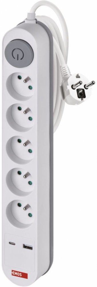 Emos P1513PD je kvalitní prodlužovací kabel, který nabízí skvělou kombinaci funkcionality a bezpečnosti. S délkou 3 metry a pěti zásuvkami 2P + PE je ideální pro domácí i kancelářské použití. Tento model je vybaven vypínačem pro snadné ovládání a USB výstupy, které umožňují rychlé nabíjení vašich zařízení. Díky dětským clonám je zajištěna bezpečnost v domácnostech s malými dětmi. Kabel je vyroben z odolných materiálů a splňuje vysoké standardy kvality. Délka: 3 m Počet zásuvek: 5× 2P + PE Vypínač: ano Barva: bílá, šedá USB výstup: 1× USB-A, 1× USB-C, total: 3,4 A – 17 W Napětí: 250 V~ Proud: 16 A max. Krytí: IP20 Typ izolace: PVC Maximální zátěž: 3 680 W Materiál zásuvky a vidlice: PC (polykarbonát) Dětské clonky: ano