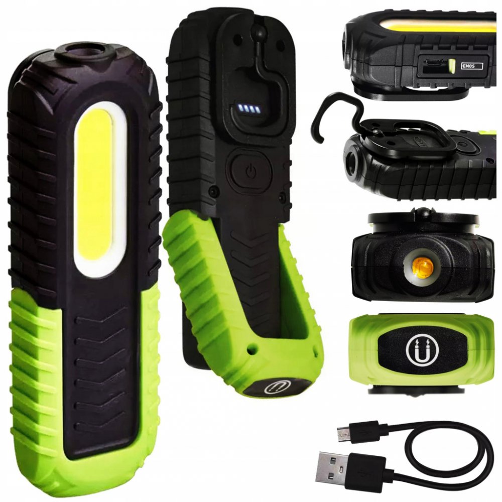 Nabíjecí pracovní LED svítilna od značky Emos najde uplatnění jak v domácnosti, tak při práci. Je vyrobena z kvalitního pogumovaného plastu, díky tomu je vysoce odolná nárazu a zároveň voděodolná. Je lehká a snadno přenosná. Svítilnu lze napájet pomocí USB portu. Součástí svítilny je také praktický hák a magnet pro zavěšení. Svítilna má dosvit až 40 metrů a svítí až 8 a půl hodiny. Svítilna má dva světelné zdroje a otočnou rukojeť.
