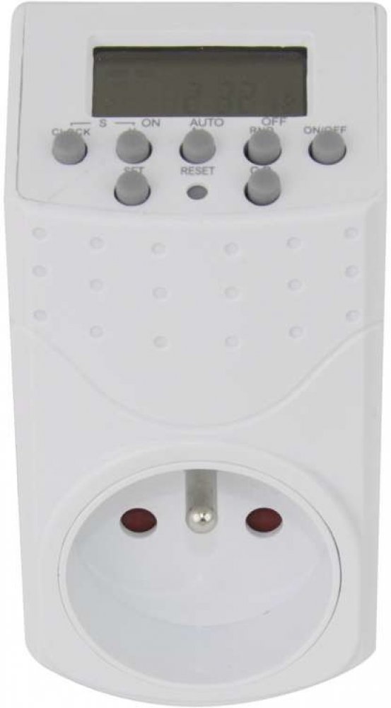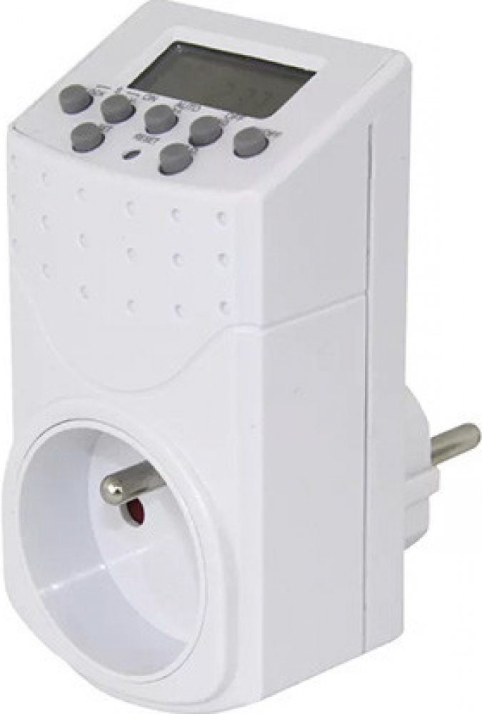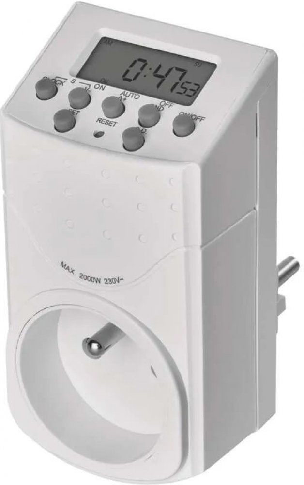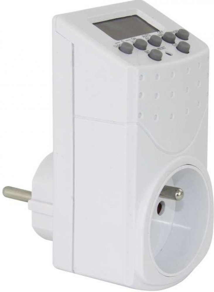 Elektronicky spínaná zásuvka s 20 spínacími možnostmi za den / 140 za týden. Ideální pro úsporu energie a bezpečnost ve vaší domácnosti.