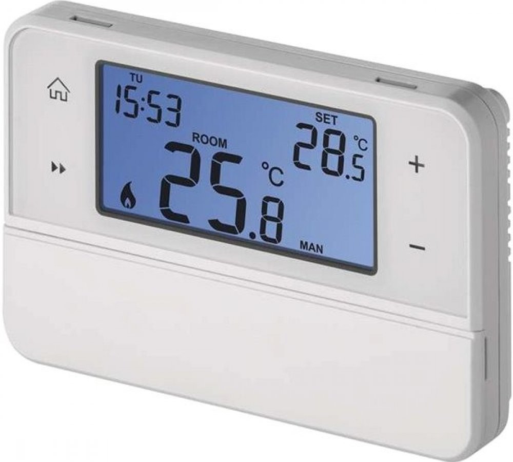 Digitální prostorový termostat slouží k automatickému řízení otopných soustav v bytech, domech a kancelářích podle nastavitelného časového programu. Možnost manuálního ovládání.