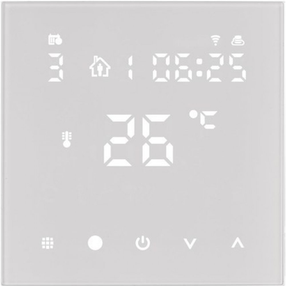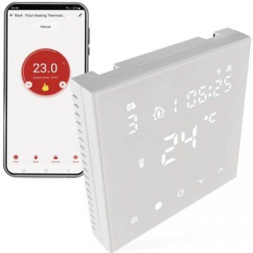 #: NTC 10 kΩ, 3 m délka kapilárního čidla: neuvádí sadosah ve volném prostoru: neuvádí sádruh regulace: topný systém HU, SI, FR, + 60 dalších jazykovkalibrace teploty: anokompatibilita: EMOS GoSmart, TUYA, LIDL, Smartlife, otevřený systém měření teploty: 0 °C až 95 °C, rozlišení 0,5 °C možnost propojení s dalšími detektory: neuvádí se napájení: 230 V ACnapájení brány: neuvádí sanapájení přijímače: neuvádí sanapájení vysílače: neuvádí sanastavení teploty: 1 °C až 70 °C, po 0,5 °Cnastavitelný rozptyl teploty: vnitřní čidlo: 0,5 °C až 2,5 °C, rozlišení 0 ,5 °C; podlahové čidlo: 1°C až 9°C, rozlišení 1°Cnotifikace do mobilní aplikace: anoochrana proti zamrznutí: anoovládání hlasovými asistenty: ano (Amazon Alexa, Google Assistant) počet programů: uživatelsky nastavitelná teplota (6× za den) podporované OS: Android, iOSpodsvícený displej: anopracovní frekvence: neuvádí se prodejní obal: 1 ks, krabička přenosová frekvence: 2,4 GHz WIFI (IEEE802.11b/g/n) protokol: Wi-Fi rozměr: 86 × 86 × 43 mm rozměr vrata: neuvádí se rozměr neuvádí serozměr vysílače: neuvádí sespínaná zátěž: 16 A odporovespínání: napěťové 230 V AC, 50 Hzsoučást balení: termostat, podlahové čidlo 3 m, Ø 8 mm typ nastavení teploty: 6 teplotních změn denně typ ovládání: programovatelný elektronický pokojový termostat, možnost ovládání iOS, Android) typ termostatu: #