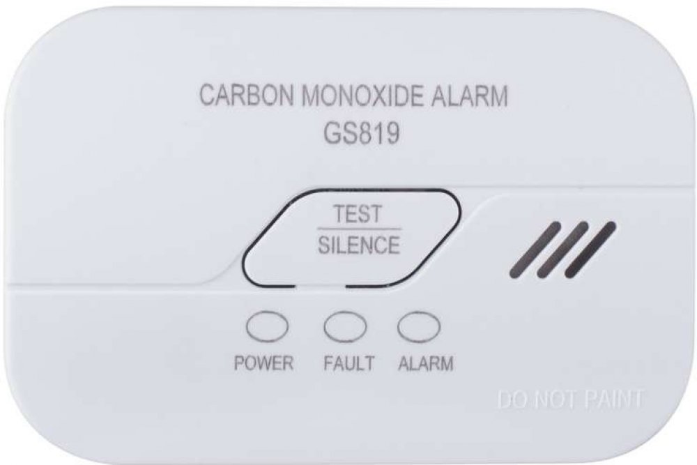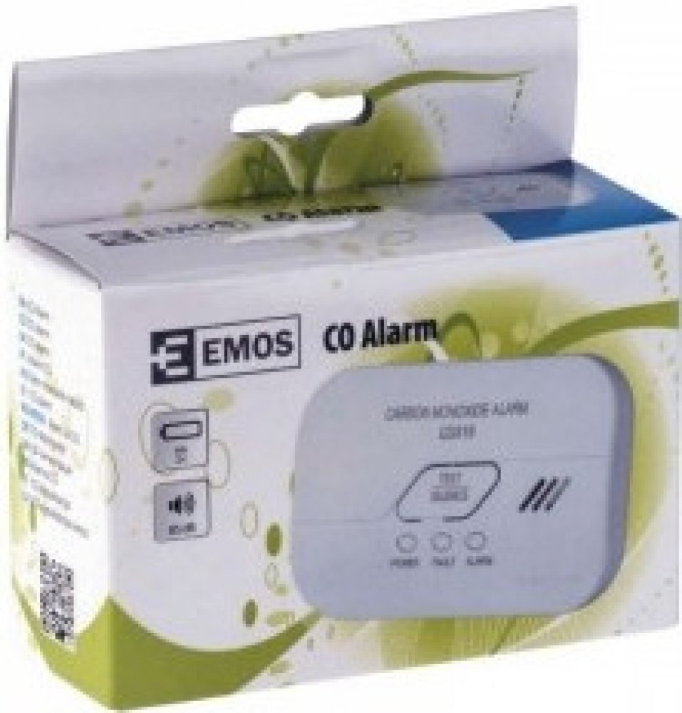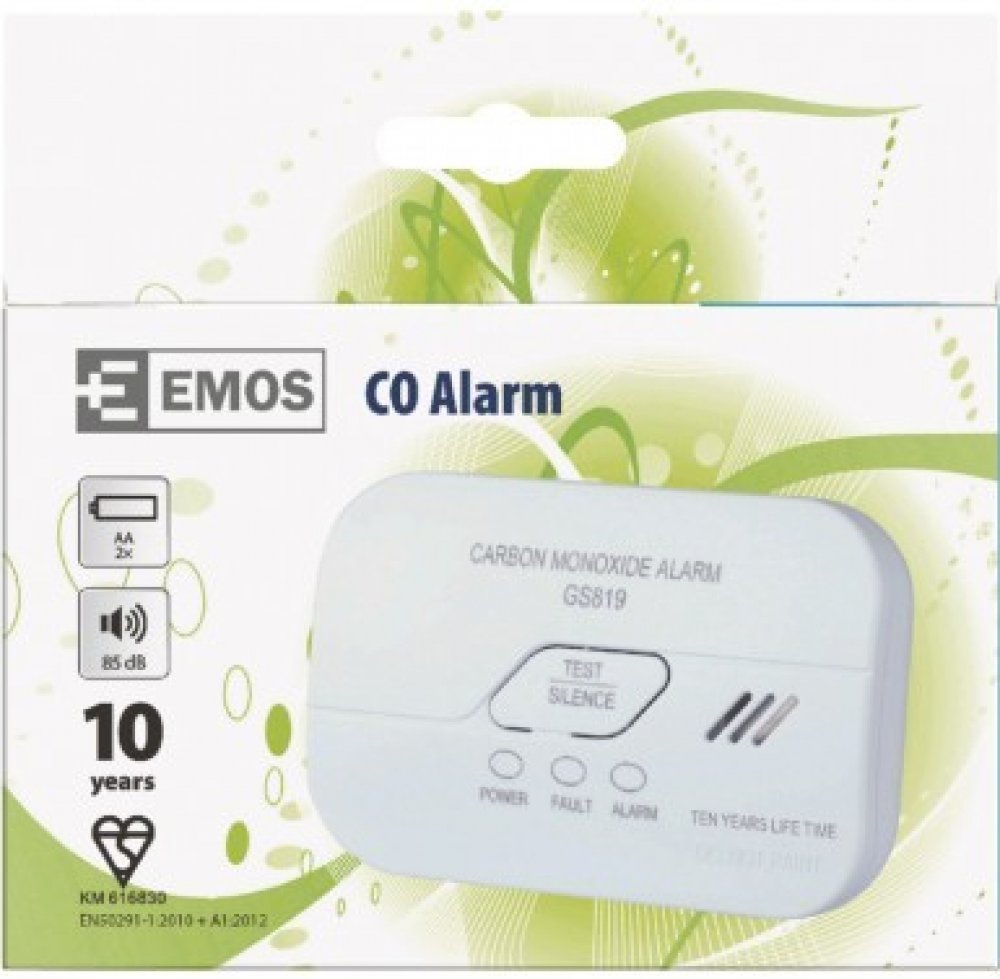 Výstražné zařízení (alarm) pro sledování koncentrace jedovatého oxidu uhelnatého (CO) v místnosti s opticko-akustickou signalizací a životností 10 let.