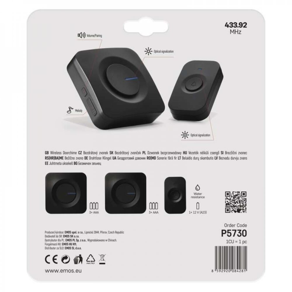 Emos bezdrátové 180 m 52 na baterie 90 dB černé