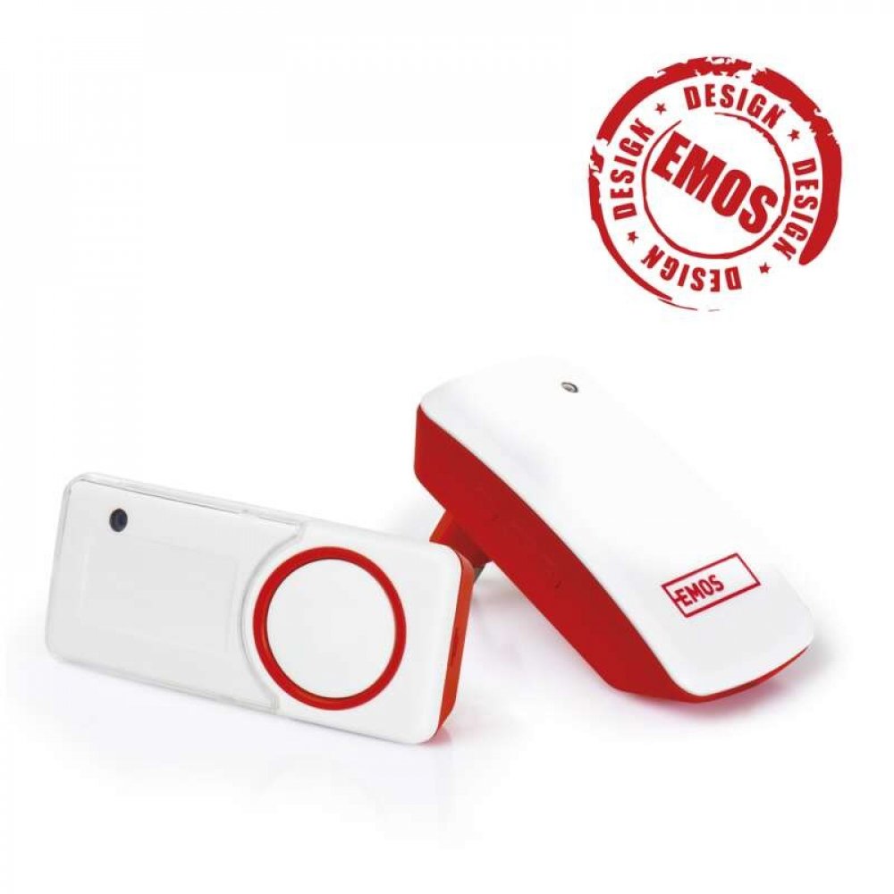 Moderní domovní zvonek EMOS v elegantních barvách bílé a červené má zaoblené elegantní tvary. Tento produkt má originální design vytvořený přímo na míru. Design a technické provedení byly navrženy našimi odborníky v České republice (EU). Tento jedinečný tvar tedy nenajdete u žádného jiného produktu.
