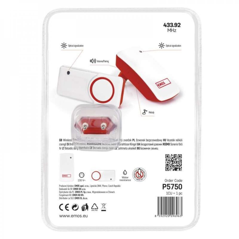 Zvonek EMOS P5750 je vybaven pěti přednastavenými úrovněmi hlasitosti pro nastavení optimální intenzity zvonění. Nestane se vám tak, že byste přeslechli pošťáka, rodinnou návštěvu, či sebou naopak s každým zazvoněním prudce trhli.