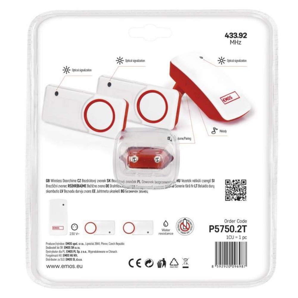Bezdrátový zvonek EMOS P5750.2T – spolehlivý, bezbateriový a s dlouhým dosahem
