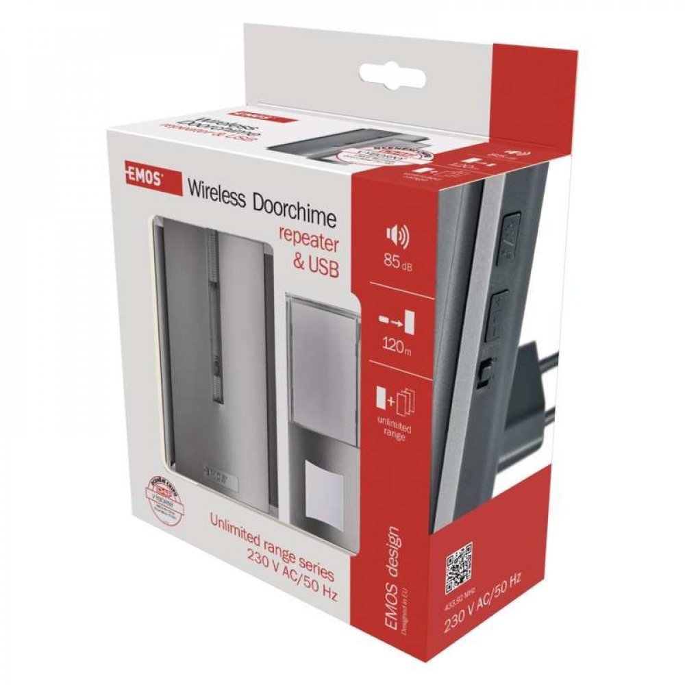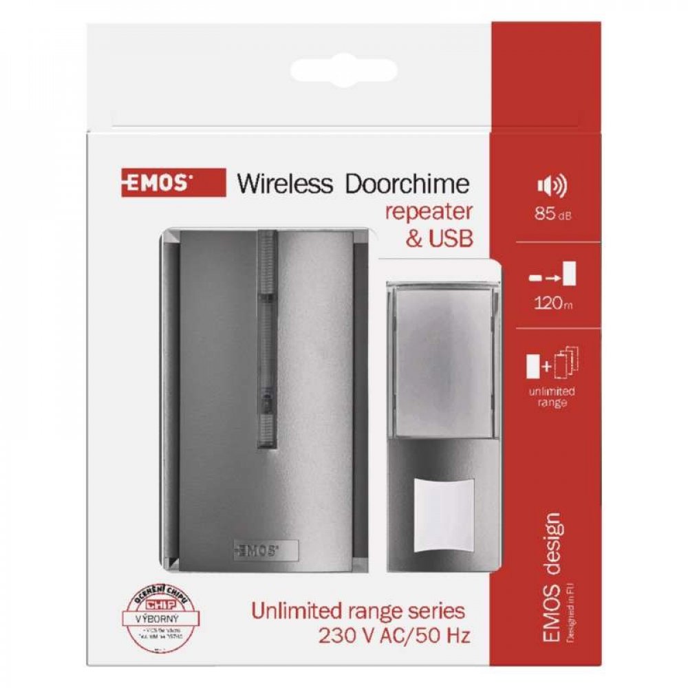 Kvalitní a spolehlivý domovní zvonek s funkcí prodlužovače signálu (repeater) a USB výstupem, který se hodí nejen k domu, ale i bytu, nebo do kanceláře. Velkou předností tohoto zvonku je jeho bezdrátové provedení.