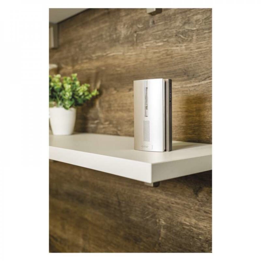 Spolehlivý zvonek s funkcí prodlužovače signálu (repeater), který se hodí nejen k domu, ale i bytu, nebo do kanceláře. Velkou předností tohoto zvonku je jeho bezdrátové provedení a možností prodloužení dosahu tlačítka zvonku.