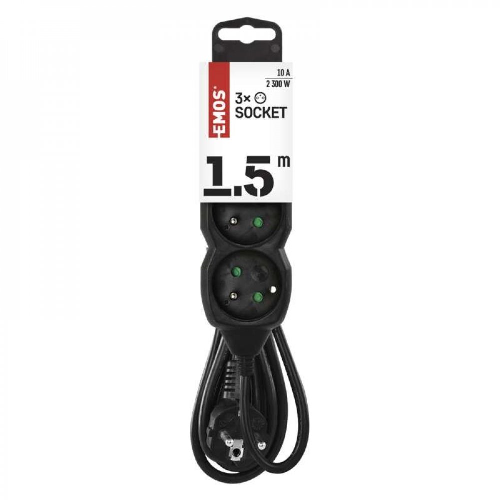 EMOS 3 1.5 m černé do interiéru pro domácí spotřebiče bez USB portů IP20 16 A 1 mm² prodlužovací lišta s běžným konektorem (Schuko / typ E/F) 3680.0 W
