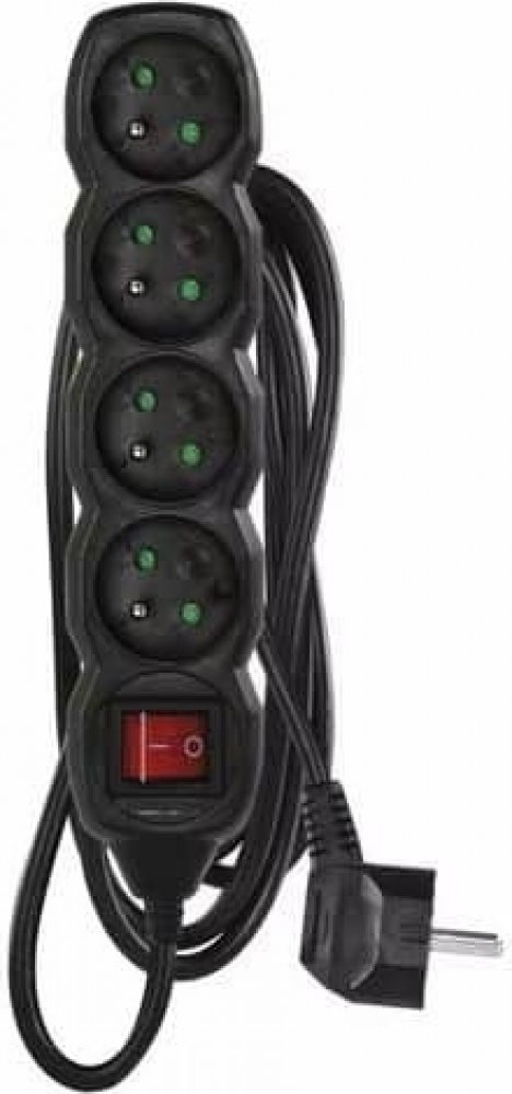 Emos PC1415R Prodlužovací kabel 5 m, 4 zásuvky, s vypínačem, černý