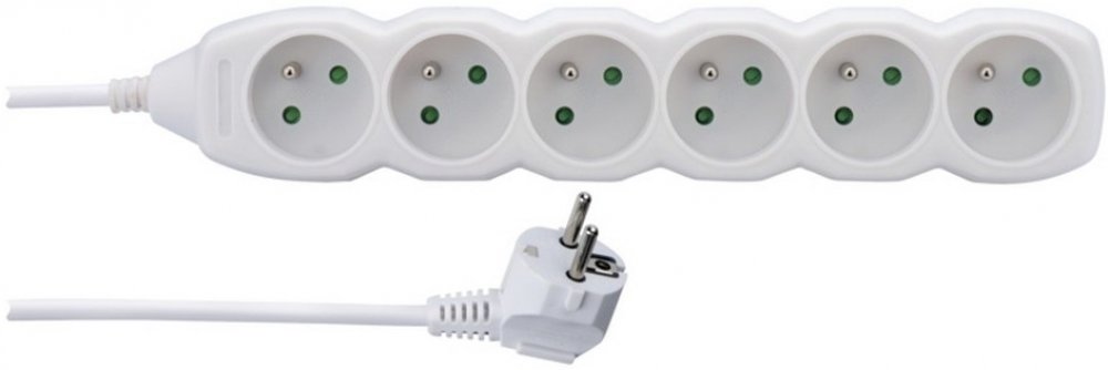 EMOS 6 2 m bílé do interiéru pro lehkou elektroniku IP20 1.0 mm² prodlužovací lišta s běžným konektorem (Schuko / typ E/F) 3680.0 W bez USB portů