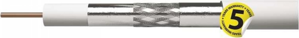 Popis produktu Koaxiální kabel s pěnovým dielektrikem a trojitým stíněním. Kabel se používá k terciálním kabelovým rozvodům a vnitřním rozvodům. Vnější průměr kabelu je 6,8 mm. Výhody produktu Koaxiální kabel nejvyšší kvality se středovým vodičem z čisté mědi BC a trojnásobným stíněním TRISHIELD z pocínované mědi CuSn, bílá barva. Kabel je určen pro všechny náročné aplikace přenosů CCTV, TV a SAT signálů. Protože má kabel velmi vysoký útlum stínění (= velmi nízké vyzařování), lze kabelem vést signál o velmi vysoké úrovni, z tohoto důvodu lze tímto kabelem přenášet signály na velké vzdálenosti. Díky kvalitnímu stínění není problém se souběhem více kabelů na velké vzdálenosti. Díky použitému materiálu středového vodiče a opletení je kabel mimořádně odolný vůči povětrnostním podmínkám, vlhkosti a korozi. Ideální kabel pro náročné domovní a bytové rozvody.