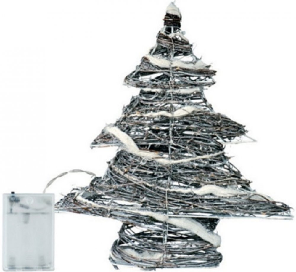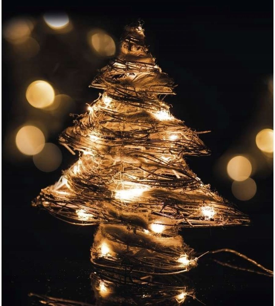 Dekorativní vánoční stromeček z ratanu disponuje 30 LED diodami, které svítí teplou bílou barvou. Délka přívodního kabelu je 30 cm. Řetěz je napájen pomocí 3xAA baterií ( baterie nejsou součástí balení).