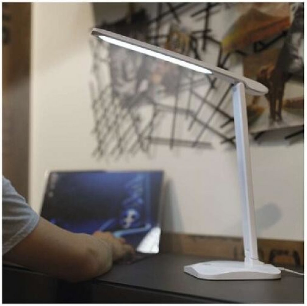 Tato bílá LED stolní lampička s výkonem 7,2 W nabízí ideální kombinaci funkčnosti, jednoduchého ovládání a elegantního vzhledu, díky čemuž se stane praktickým i stylovým doplňkem každého pracovního stolu.