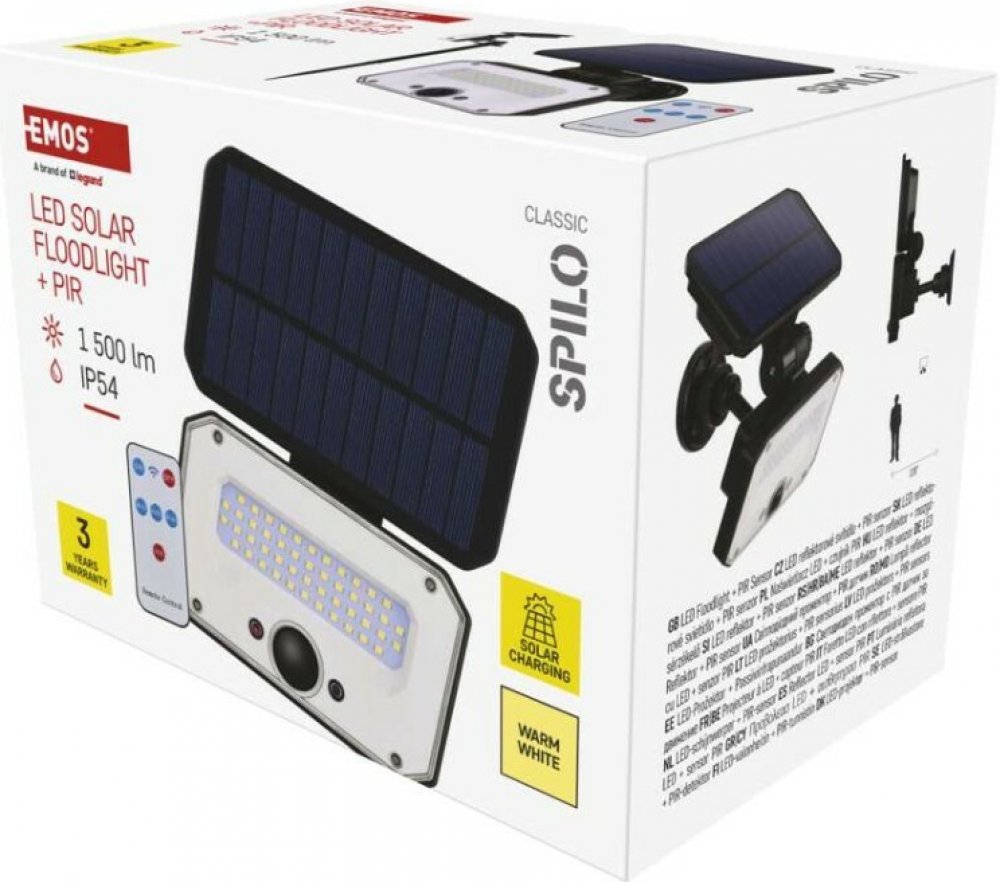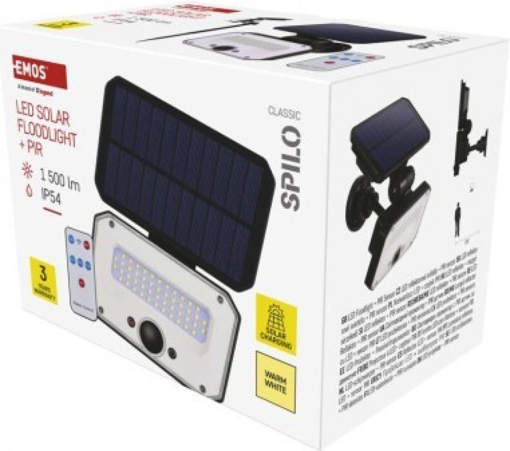 Emos ZG131S | Solární LED reflektor SPILO s pohybovým čidlem, 1500 lm, Li-Ion 3600 mAh, teplá bílá