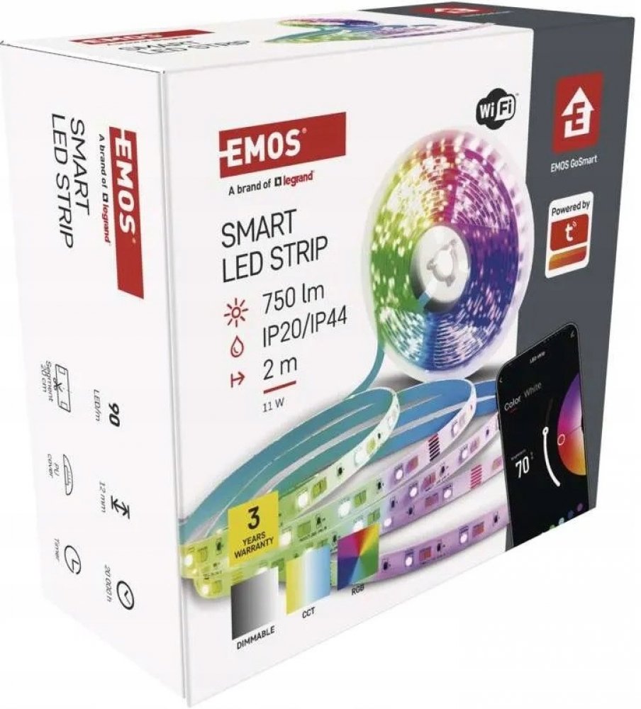 Snadné ovládání: Nastavte si tu nejlepší atmosféru v každé situaci pomocí dodávaného dálkového ovladače nebo aplikace EMOS GoSmart pro mobilní telefony. Můžete si vybrat z plného barevného spektra (RGB) a všech odstínů bílé (CCT), přičemž obě možnosti jsou stmívatelné.NASTAVITELNÁ DÉLKA: Celkovou délku 2 metrů 1,2 cm širokých pásů lze zkrátit na požadovanou délku v určených intervalech po 20 cm. Přizpůsobenou délku pásku LED lze připevnit na libovolné předměty nebo stěny.LED PÁSEK PRO VENKOVNÍ POUŽITÍ: Silikonová ochrana každého jednotlivého čipu zajišťuje voděodolnost a to, že LED pásek ani po delší době nežloutne. Připojovací kabel o délce 1,5 metru s napájecí jednotkou lze použít pouze v interiéru.SVĚTELNÉ EFEKTY BEZ KONCE: Módní samolepicí osvětlení může reagovat na rytmus a údery hudby nebo tleskání. V aplikaci lze nastavit různé světelné scény a efekty i časy zapnutí a vypnutí.2,4 GHz WIFI PŘIPOJENÍ: LED pásek EMOS GoSmart WiFi je kompatibilní s aplikací EMOS GoSmart založenou na systému TUYA, která je podporována systémy Android a iOS a lze ji ovládat také pomocí hlasových asistentů Amazon Alexa a Google Assistant.MAKING LIFE EASY: EMOS, značka Legrand, nabízí vysoce kvalitní elektrotechnické výrobky za dostupné ceny pro domácí i komerční použití. Každý z našich výrobků je pečlivě testován v naší laboratoři na kvalitu a výkon.Dodejte svému domovu jedinečnou atmosféru a zachovejte si plnou kontrolu nad osvětlením díky chytrým LED páskům od společnosti EMOS. Vytvářejte různé scény a animace, upravujte barvy světla a úrovně jasu podle svých potřeb. Díky stažitelné aplikaci EMOS GoSmart pro mobilní telefony, která umožňuje komunikaci s chytrým zařízením na bázi TUYA, nebo pomocí dálkového ovladače máte ovládání vždy na dlani. LED pásky WiFi jsou ideální pro osvětlení celé místnosti a zvýraznění estetických prvků, s možností stmívání a změny barev RGB. Ať už plánujete barevnou párty, romantický večer nebo bláznivou dětskou narozeninovou oslavu - s našimi LED pásky vykouzlíte tu správnou atmosféru pro každou příležitost. - přenosová frekvence: 2,4 GHz (IEEE 802.11b/g/n)