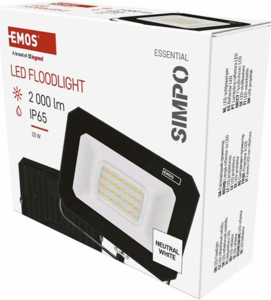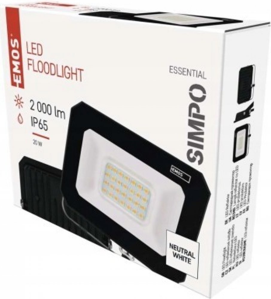 Emos černé kovové čtvercové síťové skleněné nástěnné neutrální bílá IP65 230 V F 20 W 2000 lm 4000 K 80 Ra 25 000 h