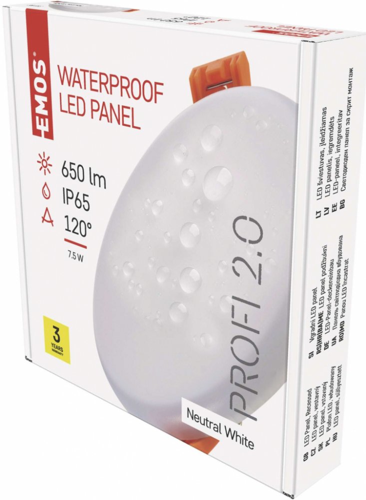 Emos bílá hliník pro středně velké místnosti pro instalaci svépomocí přisazená stropní zapuštěná 4000 K integrovaný LED zdroj 8 W IP65 E vhodné pro vlhké prostory 220-240 V 650 lm 2.0 cm 0.2 kg 10 cm 2.0 cm