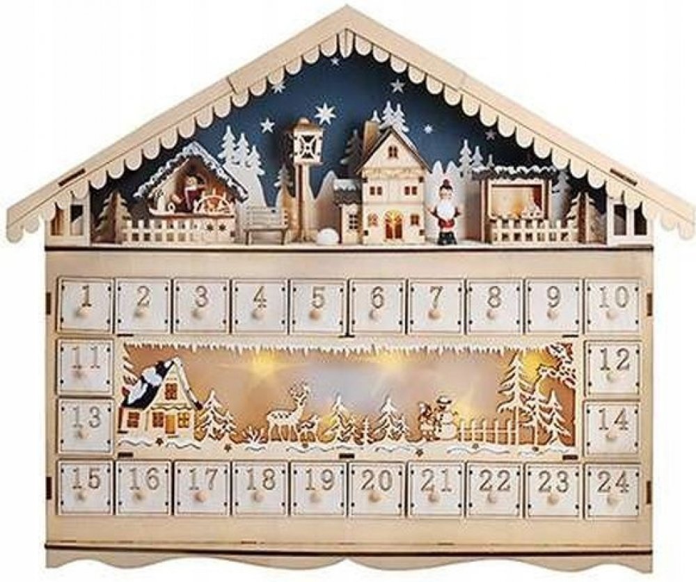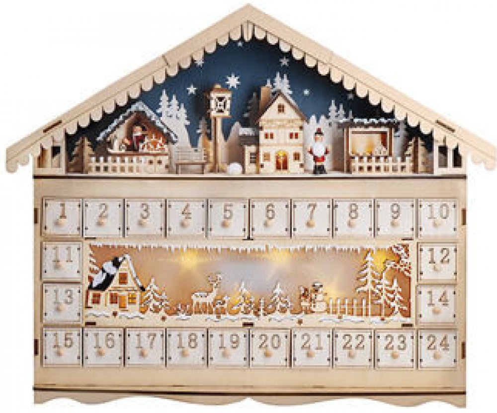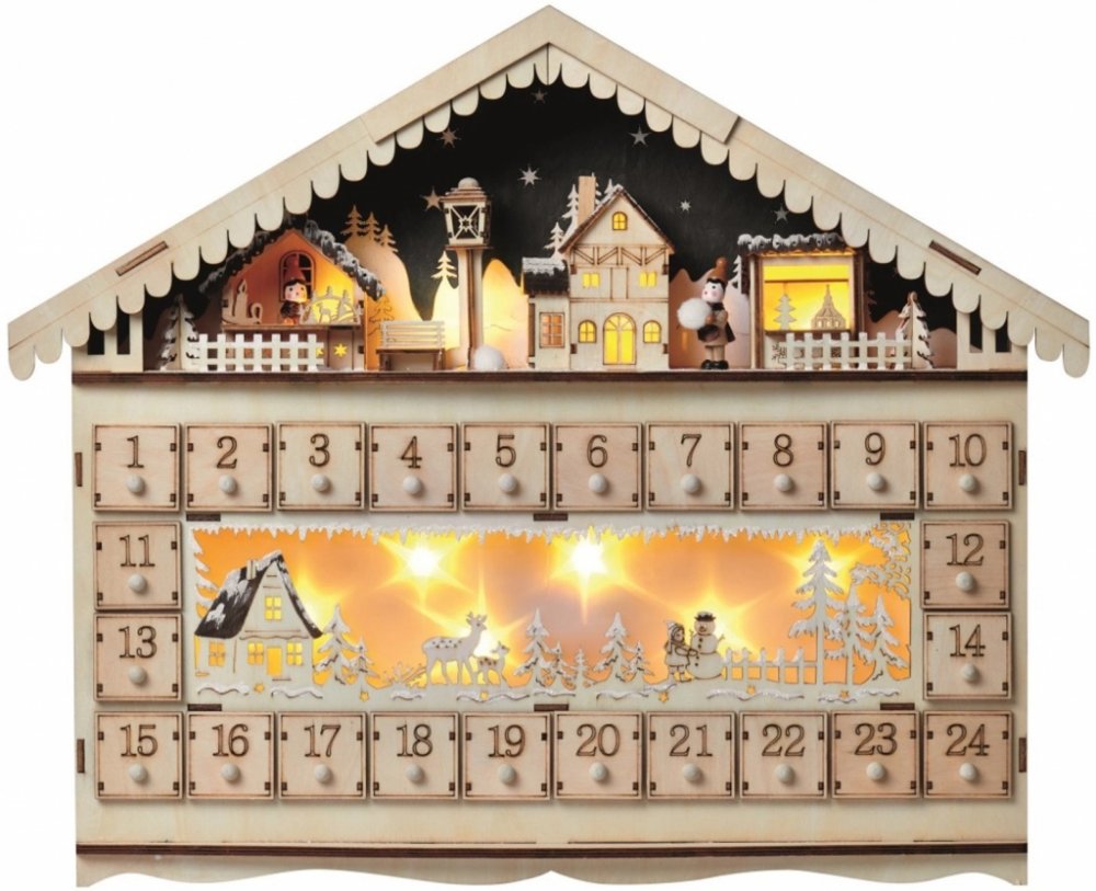 Solight Adventní kalendář Horská chata 10 LED 50 x 40 cm
