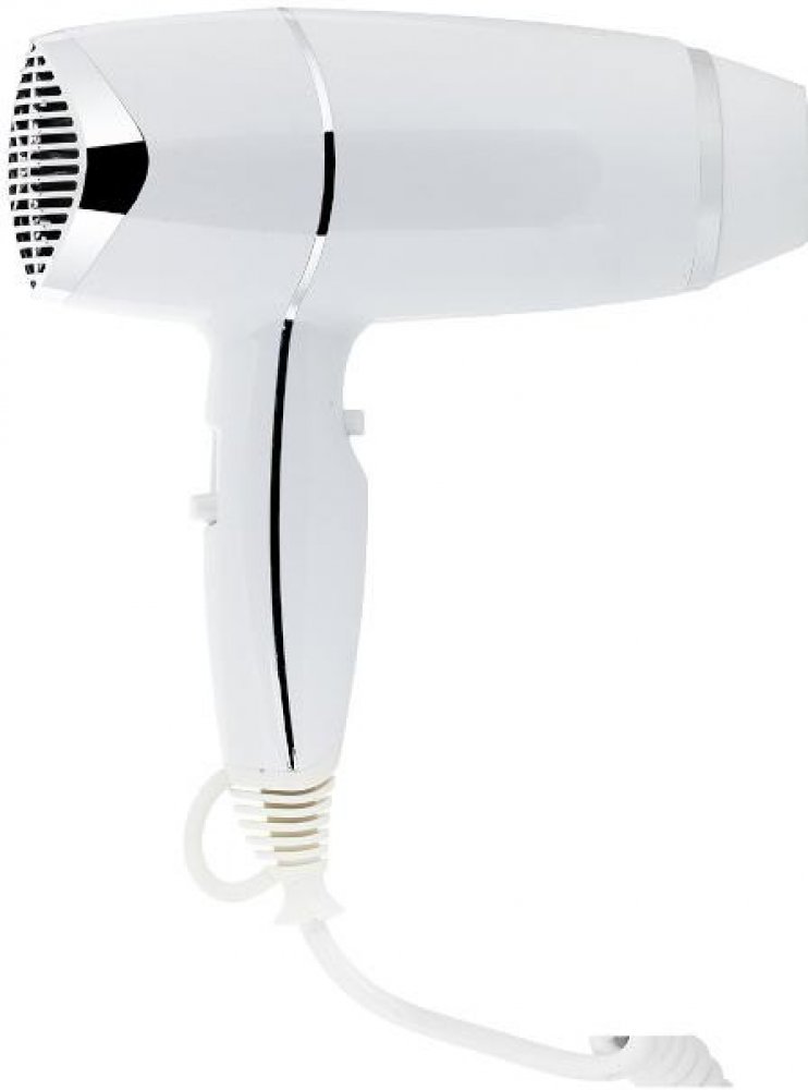 Hotelový fén s montáží na zeď, 3 rychlosti, 220 V - 240 V / 50 - 60 Hz, příkon 1.800 W, přepínač rychlostí a spouštěcí tlačítko na rukojeti, hlavní vypínač na stojánku, materiál ABS, bezpečnost CLASS II, dvojitá izolace, rozměry 220 mm výška × 250 mm šířka × 140 mm hloubka, hmotnost 0,82 kg