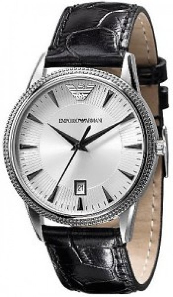 Emporio Armani analogové kůže ocel 50 m bateriové 45 g minerální elegantní pánské bateriové - quartz bez osazení kulaté černá stříbrná