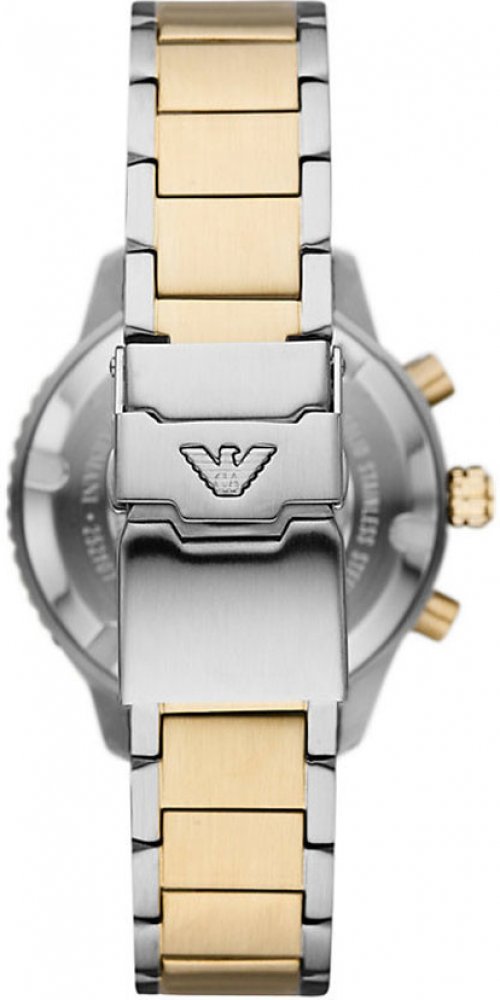Emporio Armani analogové ocel sportovní pánské bateriové - quartz pro potápění (100+ m) ocel 100 m bateriové minerální bez osazení kulaté vícebarevná zelená s luminiscencí sklapovací přezka 2.2 cm na ruku bez číslic vícebarevná ocel jednosměrně otočná 3 s dočasným svícením (luminiscence/LED) s nenáročnou údržbou (quartz) bez chytrých funkcí